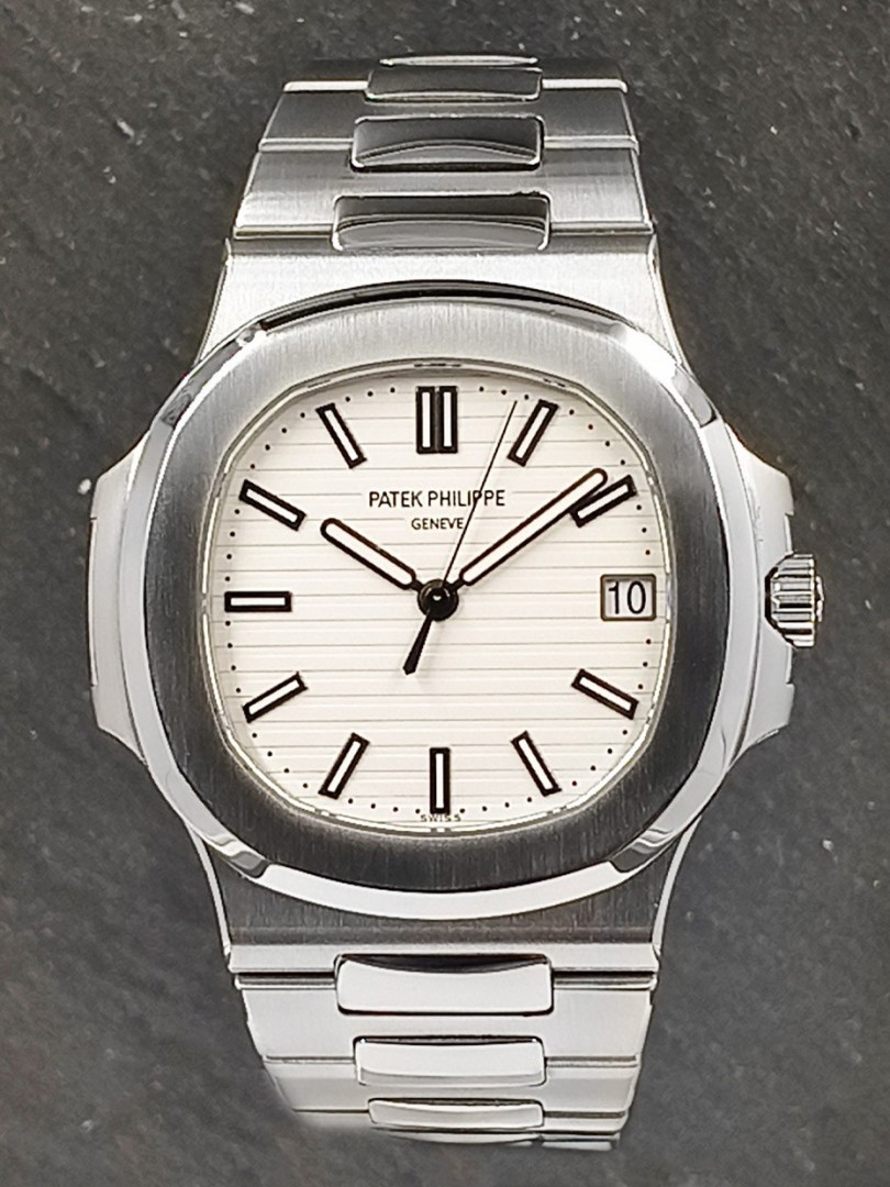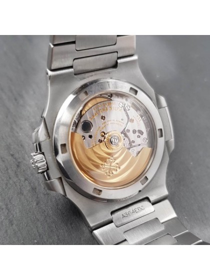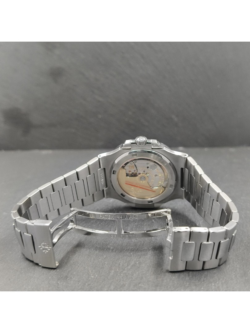 Current production watch; steel case; steel bezel; sapphire crystal; white dial with date window at 3 o'clock; steel case back with sapphire crystal, visible movement; steel bracelet; case dimensions: width 42 mm, thickness 8 mm; mechanical self-winding movement, in-house caliber 324; complete with Patek P. box and original first sale warranty dated 03/2016; 1 year warranty from www.eora.it by Stroppiana.