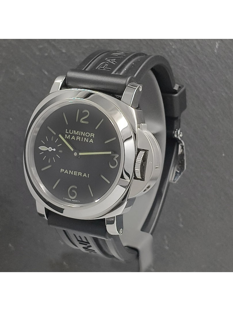 Watch made after 2000; steel case with patented crown protection system; steel bezel; sapphire crystal; black dial with continuous seconds counter at 9 o'clock; steel caseback with sapphire crystal, visible movement; original leather strap and buckle; case dimensions: diameter 44 mm, thickness 15 mm; waterproof 300 meters; mechanical hand-winding movement with chronometer certification, OP XI caliber; complete with original box with second rubber strap and screwdriver, original first sale warranty dated 06/2011; just overhauled in our laboratory with 1 year warranty from www.eora.it by Stroppiana.