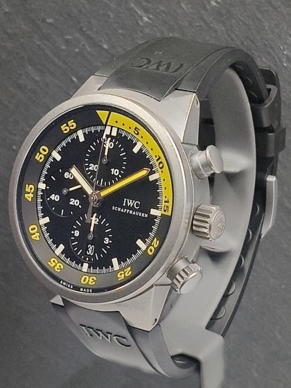 Orologio del 2006; cassa e lunetta in titanio; vetro zaffiro; quadrante nero; cinturino in gomma; dimensioni di cassa: diametro 44 mm, spessore 17 mm; impermeabile 10 atm; movimento meccanico a carica automatico con funzione chronografo, calibro 79470; corredato di scatola e garanzia originale di prima vendita datata 04/2006; appena revisionato nel nostro laboratorio con garanzia 1 anno di www.eora.it by Stroppiana.